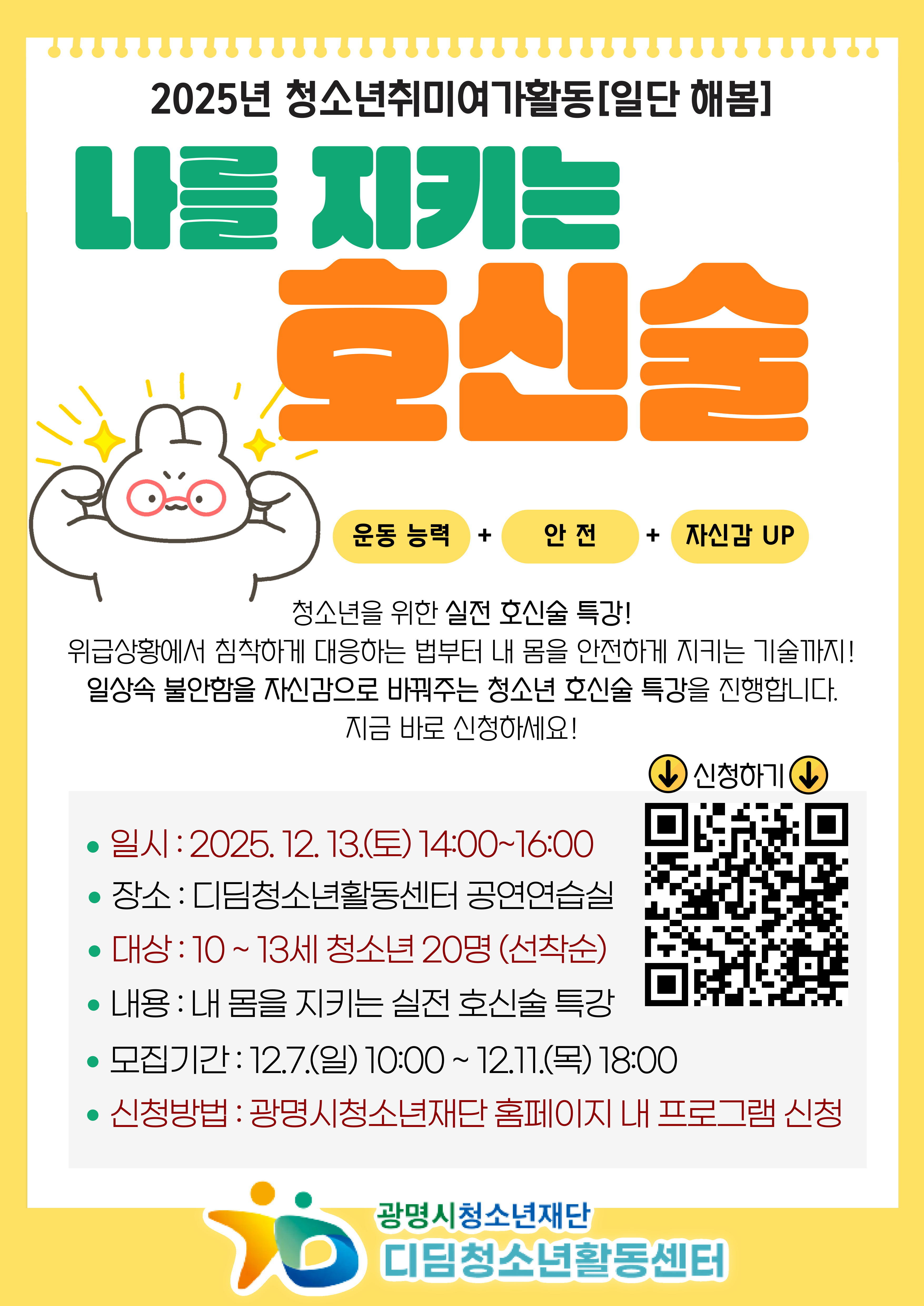| 2025년 청소년취미여가활동 「나를 지키는 호신술」 참가자 모집 | |