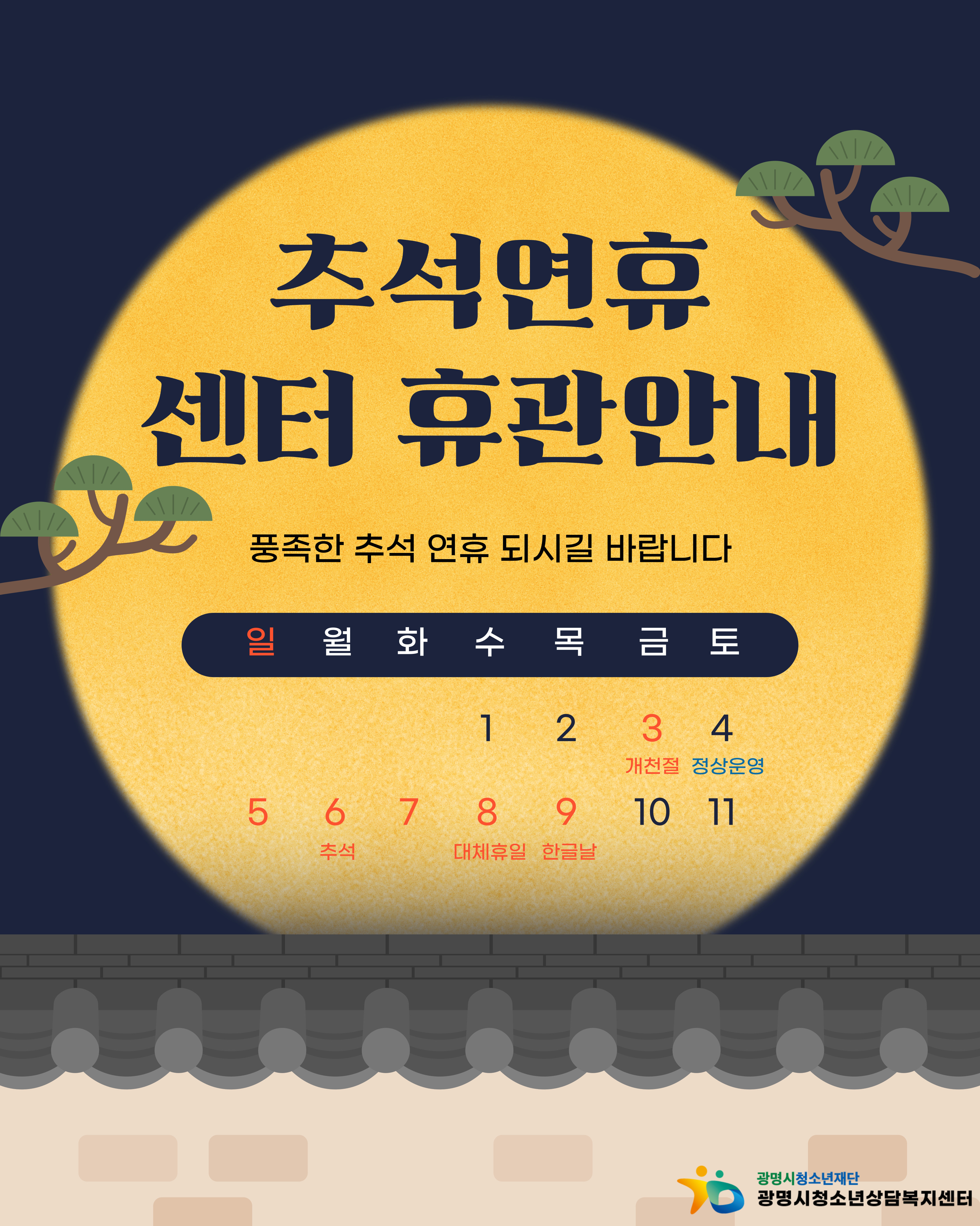 광명시청소년상담복지센터 10월 휴관 안내합니다.