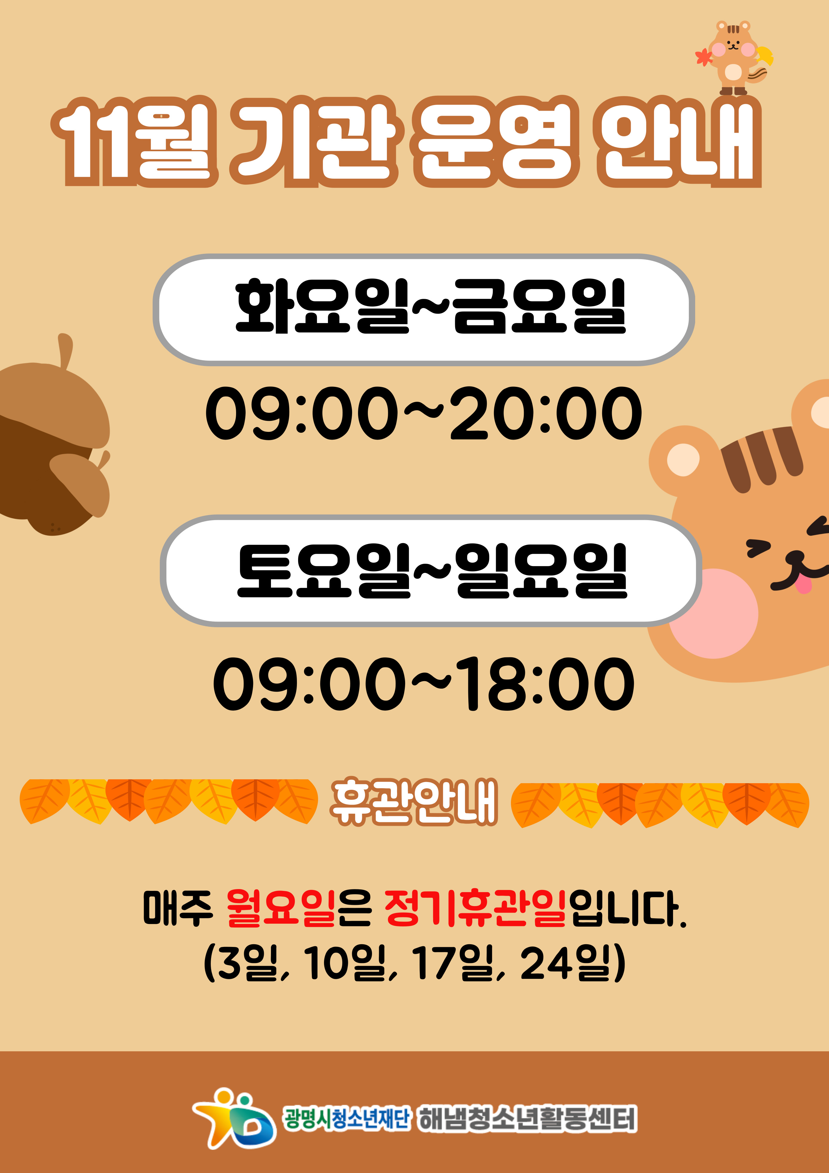 💛해냄청소년활동센터 11월 기관운영 안내를 공유합니다💛