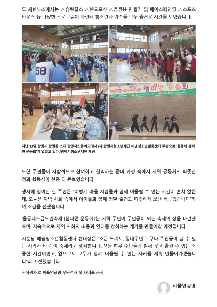 | 해냄청소년활동센터, 청소년과 지역주민 함께하는 '울동네 챔피언 운동회' 성료 | |