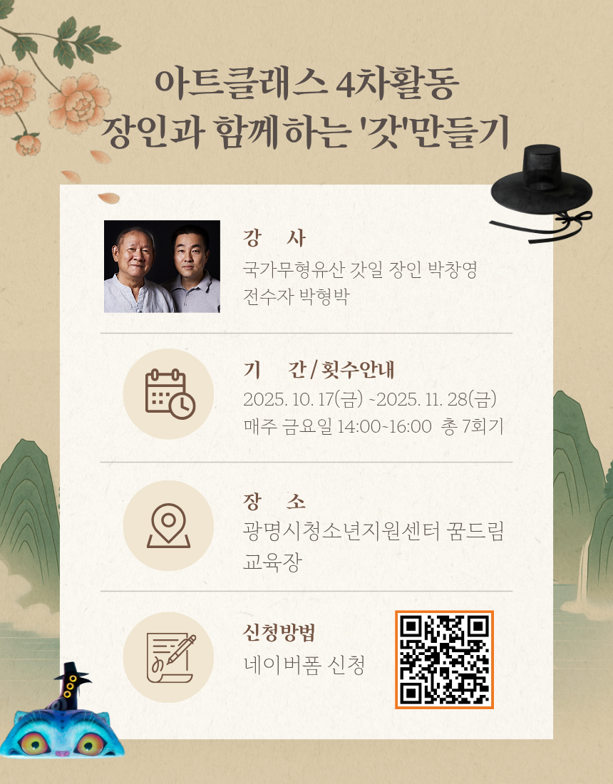 | 2025년 아트클래스 4차활동 장인과 함께 만드는 '갓' 참여자 모집안내 | |