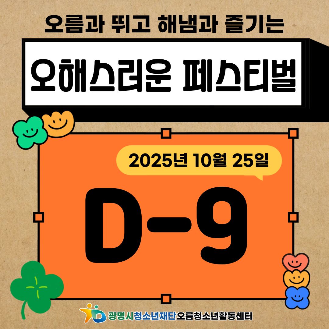 앞으로 다가온 오름 건강축제X해냄 청소년어울림마당 연합 [오해스러운 페스티벌] D-DAY 9