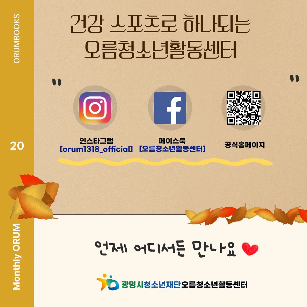 . 9월의 오름청소년활동센터는 어떤 일이 있었을까요!!!?😆 . 청소년동아리연합회 [혜화]부터 청소년동아리활동지원사업, 동물교감 테라피독, 청소년운영위원회, 오름 올림픽 등등 많은 프로그램들이 운영되었답니다~!!! . 월간오름 9월 2호를 보면 오름에서 어떤 활동이 진행되고 있는지 한 눈에 확인 할 수 있답니다! . 10월에는 어떤 오름의 활동들이 진행될지 모두 기대해주세요!!👍 |