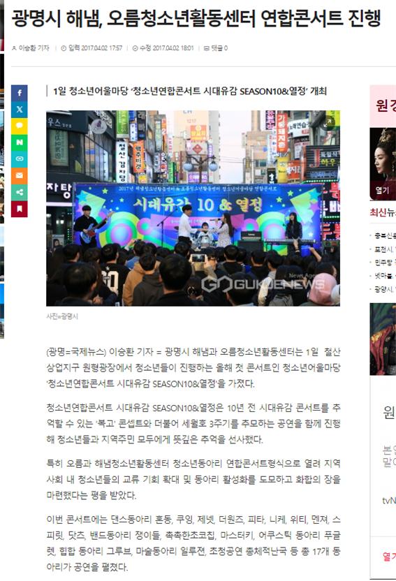 언론에 비친 오름 홈 홍보 프로그램 및 대관신청 알림마당 홍보 사업소개 센터소개 로그인 언론에 비친 오름 활동사진 언론에 비친 오름 sns공유 열기 이 페이지 공유하기 sns공유 닫기 페이스북 X 블로그 프린트 홈 홍보 언론에 비친 오름 [오름]보도자료 상세보기 - 제목, 내용, 파일 정보 제공 [2017] 오름청소년활동센터 연합콘서트 이미지 확대보기 [2017] 오름청소년활동센터 연합콘서트 파일 jpg 문서 [2017] 연합콘서트.jpg 목록 게시물삭제 광고 반복작성 욕설 본인삭제 게시물삭제 이전글 [2025년] 오름청소년활동센터 청소년동아리활동지원사업 8월 연합 사회공헌활동 [식빵톡톡!나눔데이] 진행 다음글 [2015] 오름청소년활동센터 학교폭력예방교육