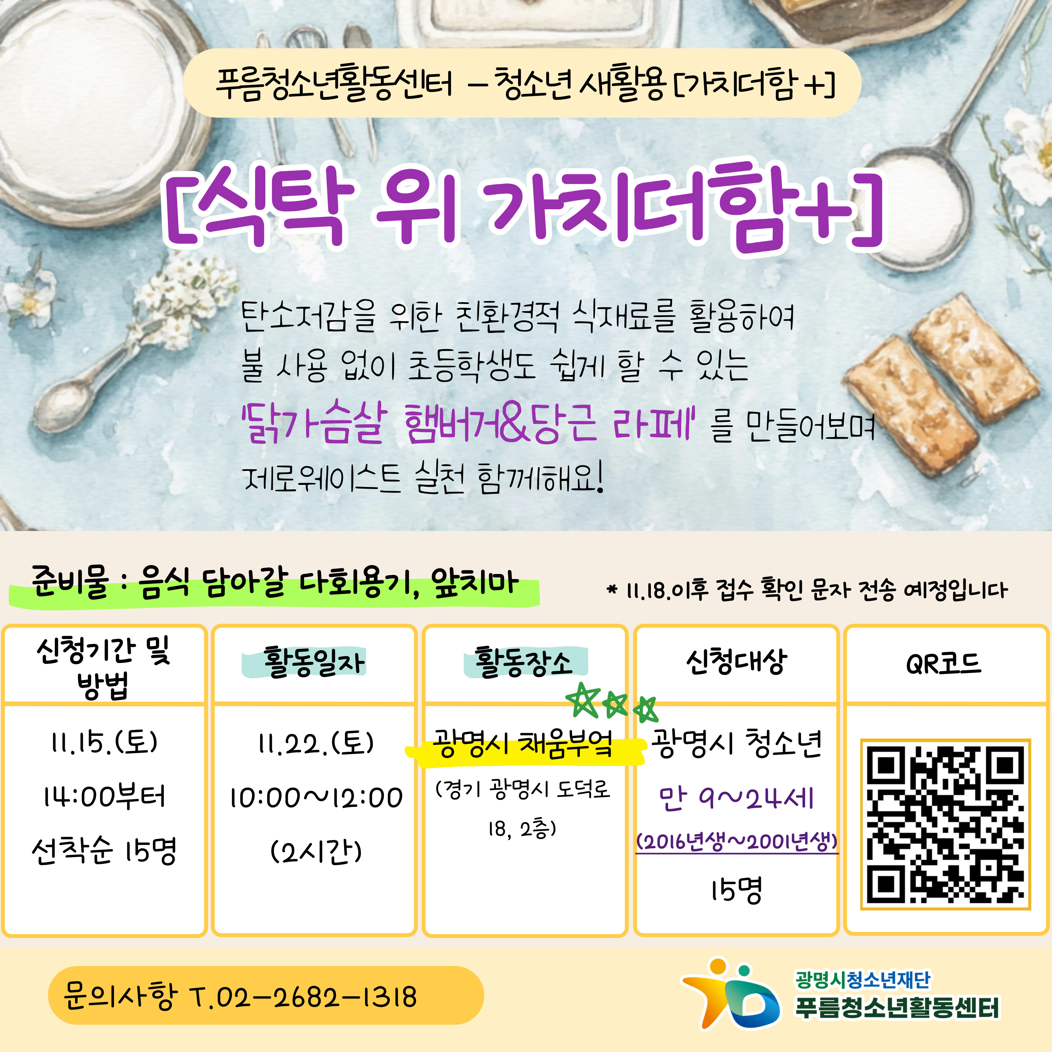 | 청소년새활용 [식탁 위 가치더함+] '제로웨이스트&탄소저감 요리하기' 참가자 모집 재안내 | |