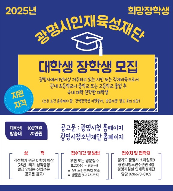 | 제27회 2025년도 광명시인재육성재단 장학생 선발 공고 | |