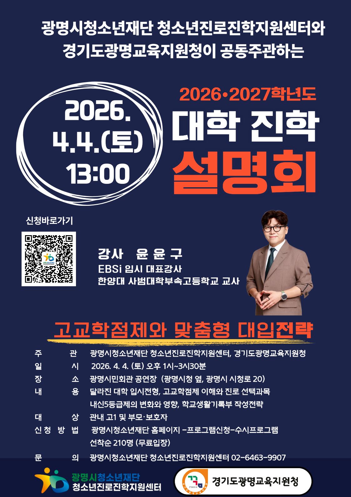 | 분야 | 진로진학 | 수강대상 | 성인 청소년 | 상세 | 관내 고1, 부모·학부모, 진학에 관심 있는 시민 등 |