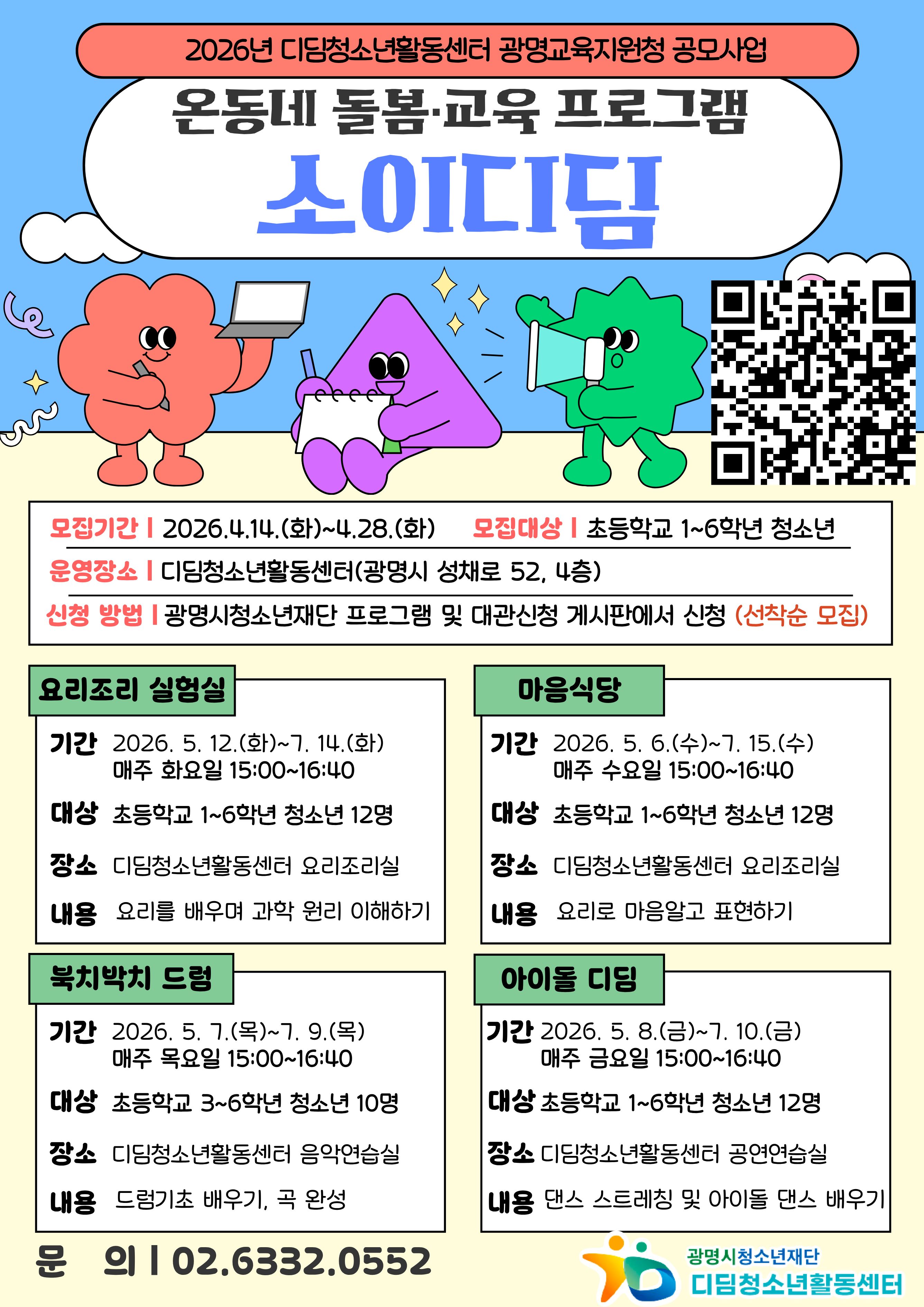 | 분야 | 디딤청소년활동센터 | 수강대상 | 아동 청소년 | 상세 | 초등학교 1~6학년 청소년 |